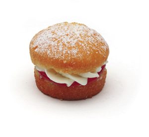 Un mini elaborado de bizcocho victoria con un sabor tierno con nata y mermelada, con un toque final espolvoreado con azúcar glas. Su acabado cuidadoso y su textura lo convierte en una opción perfecta para disfrutar en cualquier momento.