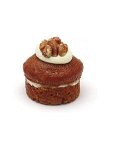 Un clásico irresistible, este mini carrot cake, es un bizcocho de zanahoria ligeramente especiado, relleno y cubierto con crema de queso y media nuez. Este mini te conquistará con tan solo el primer bocado.